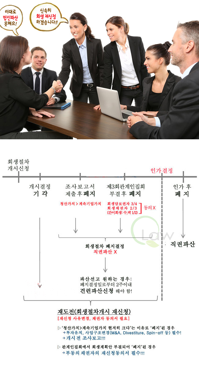 이는 다양한 기업들의 법인회생절차를 진행했던 곳을 고르는 것도 물론 중요하며, 만일의 경우에 대비하여 법인회생절차가 폐지되는 경우라도 이를 전화위복 시킬 수 있는 재신청전략 노하우와 경험이 풍부한 법무법인을 선택하는 것은 대단히 중요합니다.