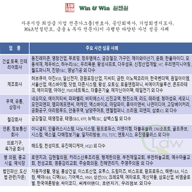 로펌 윈앤윈의 전문 업무에 대한 종합 분석 보고서